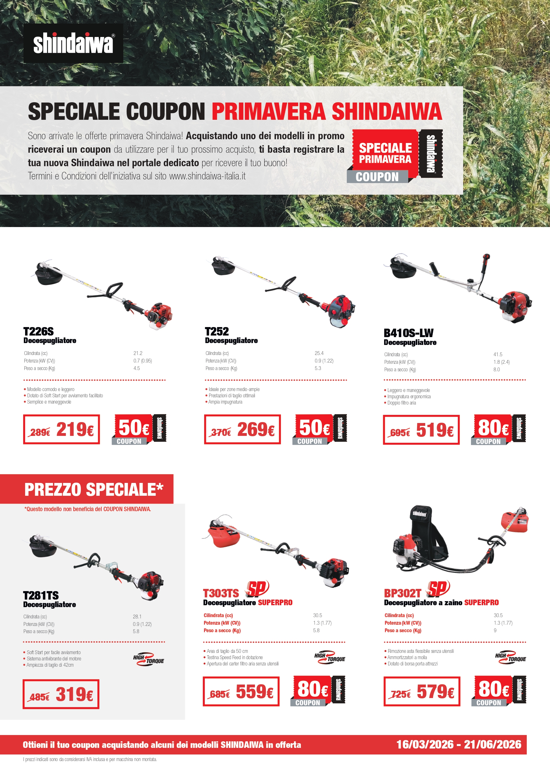 Offerte Shindaiwa Primavera 2026 Volantino Shindaiwa primavera 2026 offerte valide dal 16/03/2026 al 21/06/2026